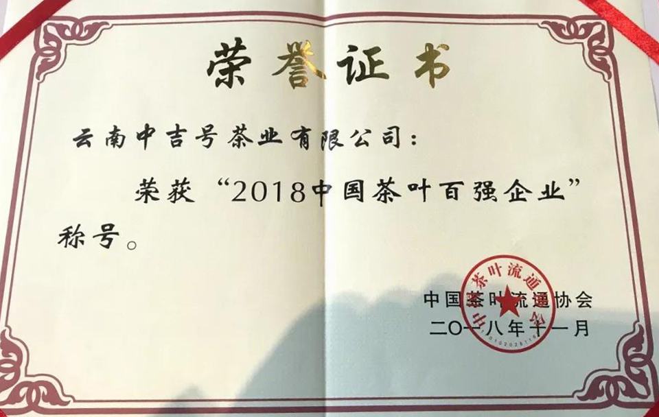 中吉号茶业荣获云南省农业产业化省级重点龙头企业