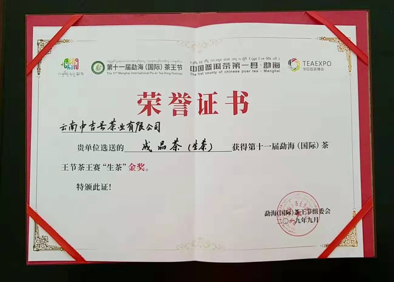 第十一届勐海茶王节茶王赛成品茶“生茶”金奖